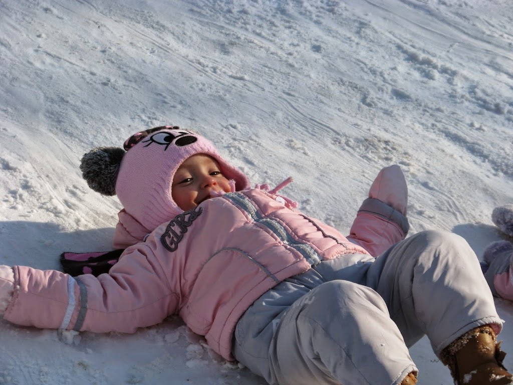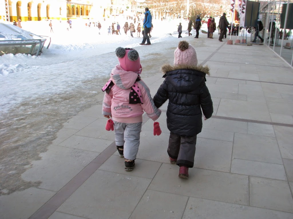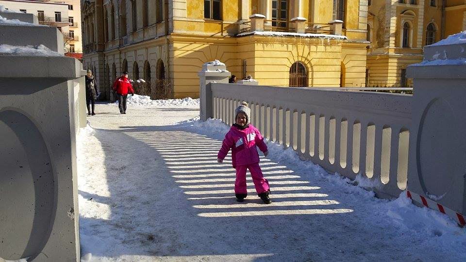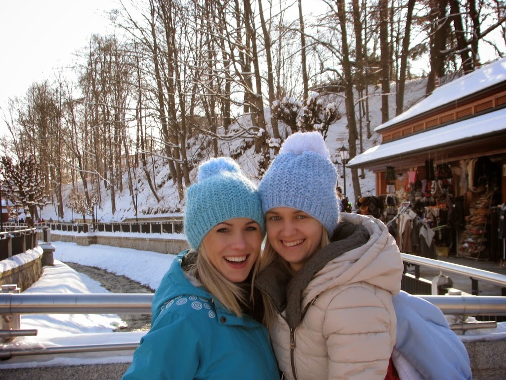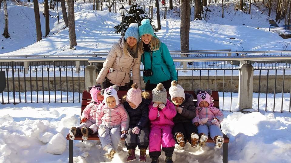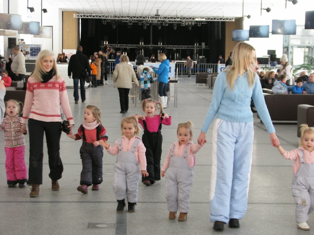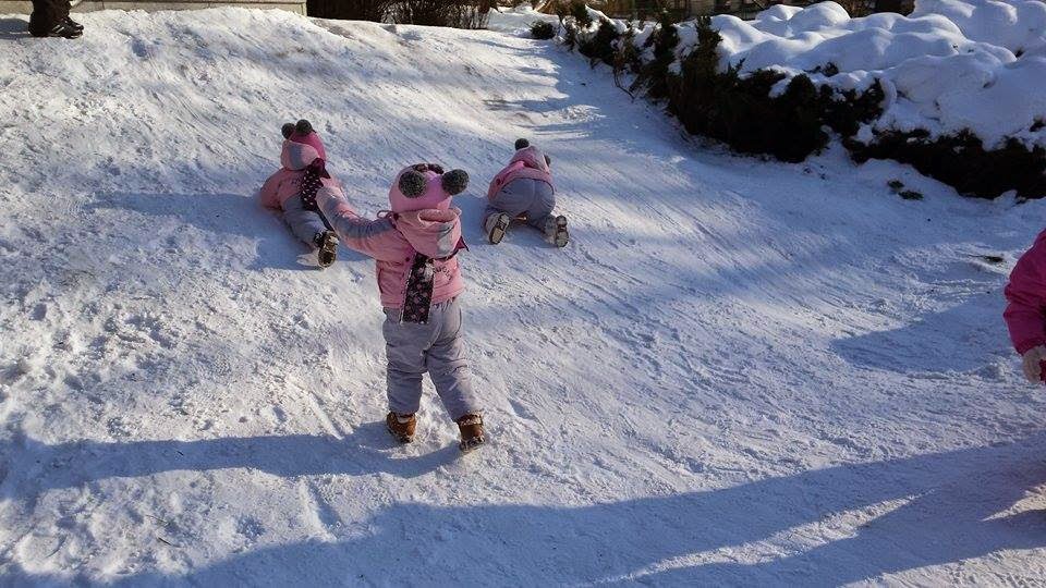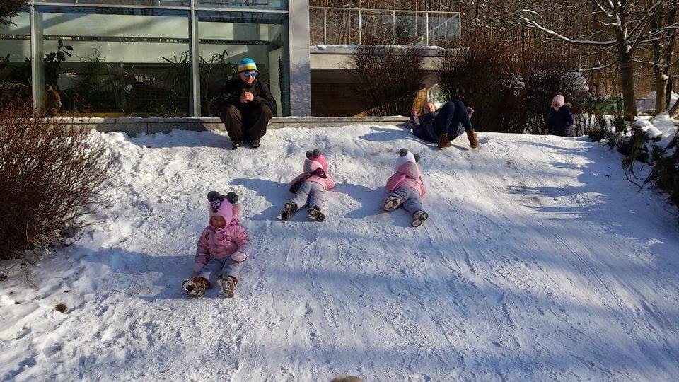 W Krynicy było cudownie, promyki słońca odbijały się od białego puchu który pokrył całą okolice. Dziewczyny turlały się i zjeżdżały na tyłkach z mini górki. Nie wyobrażacie sobie jaką byliśmy atrakcją turystyczną. Wszyscy się za nami oglądali. Ania ubiera dziewczynki jednakowo, więc tym bardziej przyciągaliśmy spojrzenia turystów.