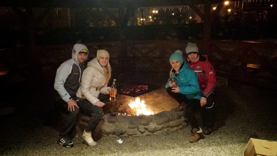 Tego wieczoru dziewczynki o godzinie dwudziestej już smacznie spały, a rodzice dzięki kochanemu dziadkowi Arturowi, który pełnił dyżur opiekuna nad śpiącą szóstką mogli zrelaksować się przy ognisku! Wyobrażacie sobie ten pyszny smak kiełbaski w środku zimy?