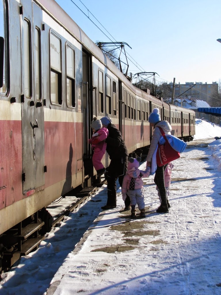 Dopiero przed stacją na której mieliśmy wysiadać nasza Lenka zasnęła na stojąco trzymając się Wojtka rąk, natomiast Zuzia Ani skulona w kuleczkę na fotelu 🙂  Ale my wredne matki nie pozwoliłyśmy na relaks i trzeba było się otrząsnąć 🙂