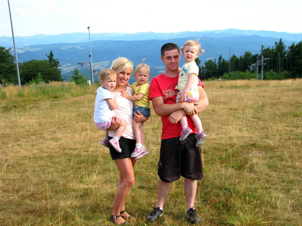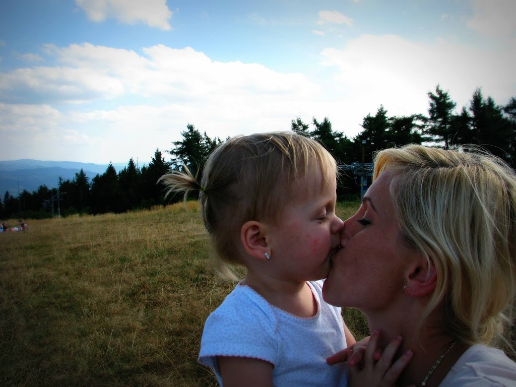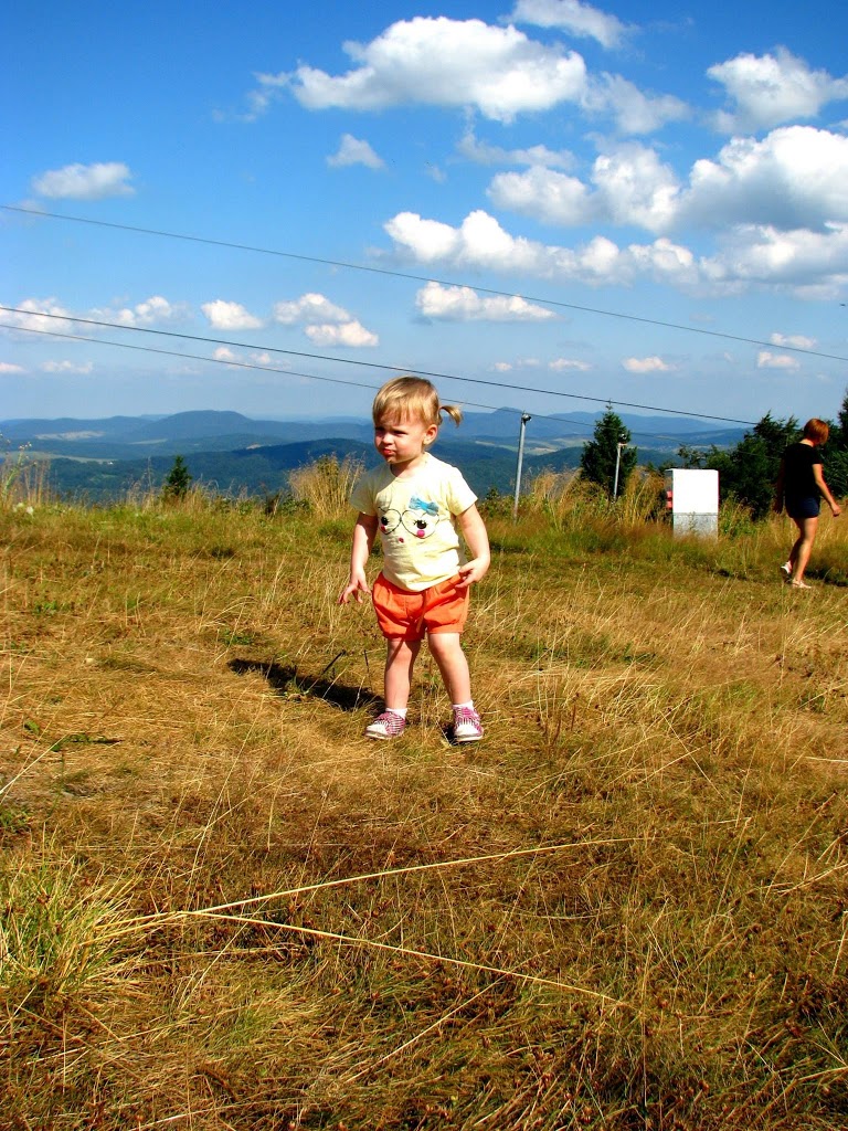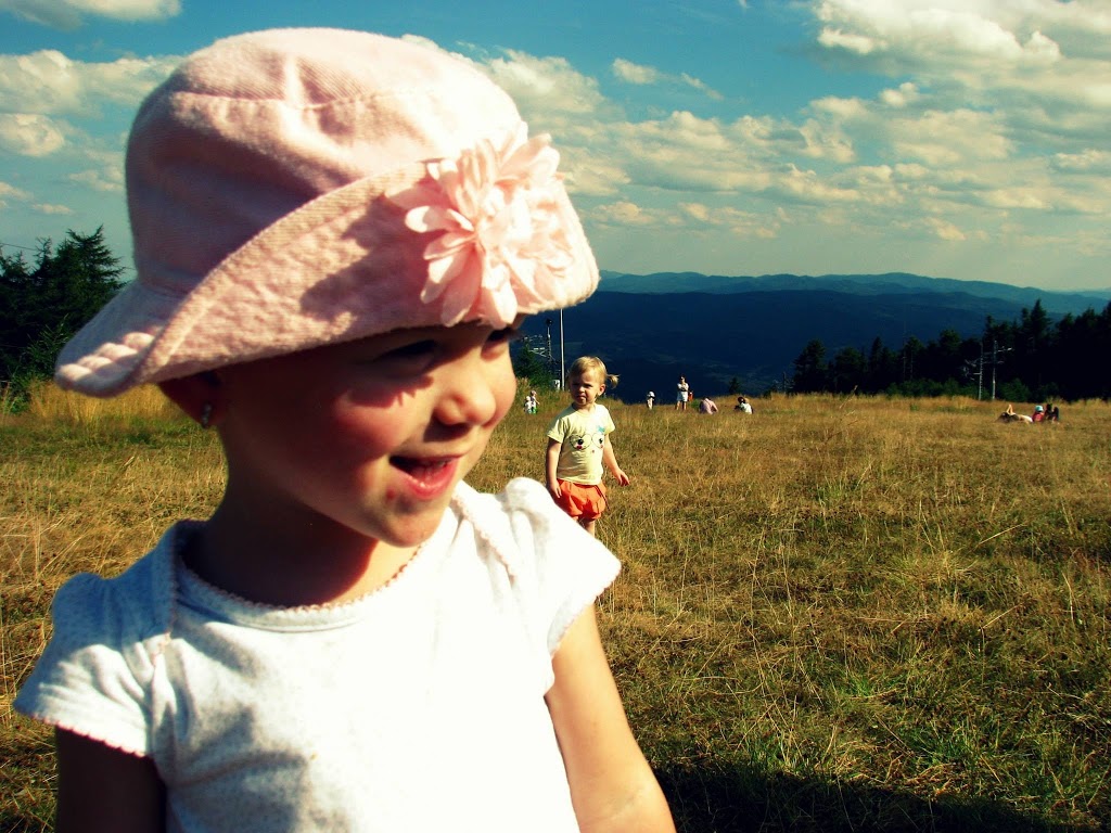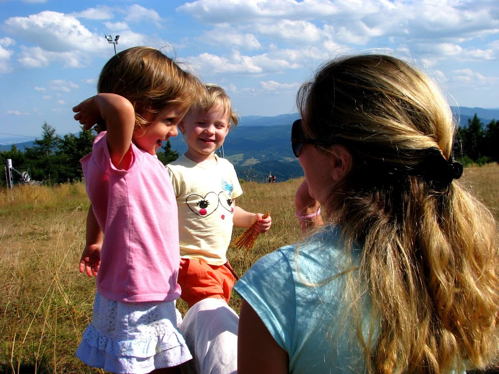 Piękna słoneczna niedziela, od rana zastanawialiśmy się gdzie tym razem pojechać z dziećmi. Zdzwaniałam się z Madzią, która wypoczywała ze swoją rodziną w Wysowej i tak od słowa do słowa wyszło, że oni też gdzieś chcą się wyrwać. Umówiliśmy się o 15:00 na parkingu pod Jaworzyną Krynicką 🙂 Zebrałam całą moją ferajnę, zapakowałam prowiant i wyruszyliśmy w kierunku najbardziej przez nas lubianym czyli na Krynicę 🙂 Nie mogłam doczekać się spotkania z mamą Madzią i jej przecudną Karolinką (już kiedyś pisałam o blogu, który Madzia niestety zakończyła, ale warto do niego zaglądnąć, bo to dla mnie najpiękniejszy blog, który czytałam i często do niego powracam, adres do bloga Tutaj ) Oczywiście na przywitanie uściski i całusy, kupiliśmy bilety na kolejkę i zapakowaliśmy się wszyscy do jednego wagonika 🙂 Po drodze Karolka rozpieszczała nasze uszy pięknymi zdaniami, których osobiście nie mogę się doczekać u moich córek, podziwialiśmy przepiękne widoki i próbowaliśmy zająć czas osobie, która bała się wysokości (wtajemniczeni wiedza o kogo chodzi :)) Na szczycie Jaworzyny wyłożyliśmy się na trawie i rozkoszowaliśmy się naturą 🙂 Początkowo Karolka i moje maluchy podchodziły do siebie z dystansem, ale po chwili znalazły wspólny język 🙂 Oczywiście mama Madzia sypała zabawami jak z rękawa, jak nie zabawa w „łapki” to w gonitwę, zadbała również o zapełnienie naszych brzuszków, bo zajadaliśmy się przepysznym ciachem od mamy Madzi 🙂 Nie zabrakło też „podlewania” przez nasze dzieciaki szczytu góry 🙂 (o nauce sikania już niebawem)