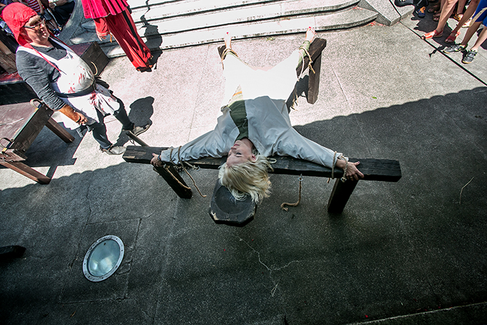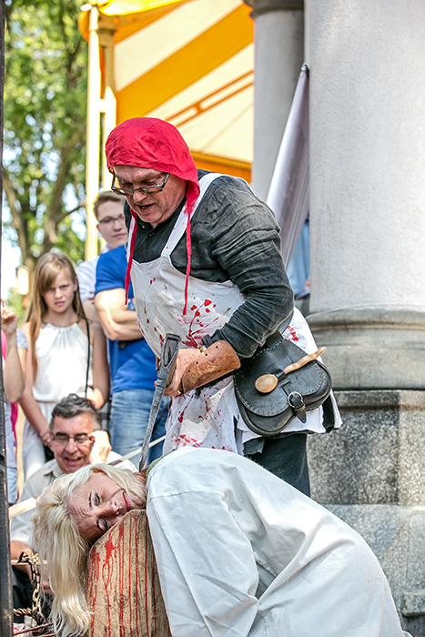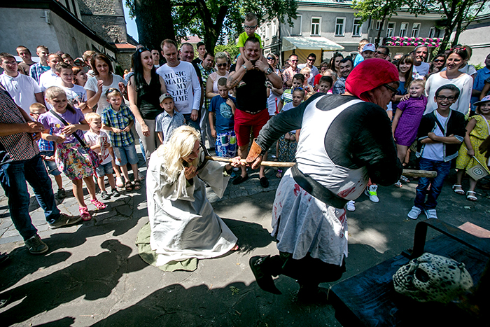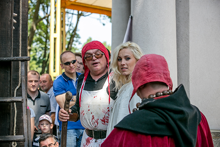 Żeby nie było, że moja praca to same minusy. Spotykam wiele bardzo fajnych ludzi, którzy przyjeżdżają do nas z całej Polski, albo i świata. Nie raz spotkałam jakąś czytelniczkę bloga, która powiedziała: „Świetny blog, czytam„. Mam możliwość przebierania się w stroje, z różnych epok, mogę brać udział w różnych inscenizacjach, tak jak w miniony weekend, gdzie znęcano się nade mną i chciano obciąć głowę.  Moje oczy widzą to czego nie widziałyby gdybym nie była po tej stronie.