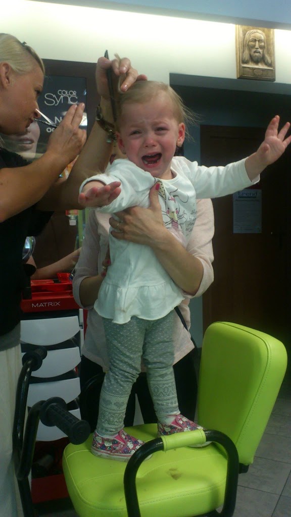 U nas póki co Luli korzysta z usług fryzjera zwanego babcią, bo włosków nie ma aż tyle, by fryzjer był przydatny, a babcia ma dryg.